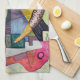 Ein farbenfrohes abstraktes Design auf einem Handtuch bereit, um die Küchenaufgaben zu bewältigen.