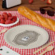 Die Tür wird geöffnet, und die Papiertafel wird ge Pappteller