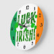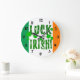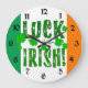 Feierliche grüne Orange-Weiß Uhr mit sterniedrigem Schriftart und 7 grünen Kleeblättern oder vierblättrigen Kleeblatten. Das sind die wahren Farben der irischen Flagge. Grün ist für die gälische Tradition; orange ist für die Anhänger William des Orangen; weiß steht für Frieden zwischen ihnen. Drei- und vierblättrige Klee wird weltweit gefunden und wird seit Christlichen Zeiten mit Naturmagie, Frühjahr, guter Gesundheit und Wohlstand assoziiert. Vier-Blatt-Kleeblätter oder glückliche Nelken sind in Irland besonders reichlich vorhanden, da sie häufig auf Weißen Kleeblatten vorkommen - daher das Sprichwort "Luck o' the Irish!". Das ist auch eine großartige Uhr für ein irisches Pub, ein Gemeinschaftszentrum, ein Sportteam oder eine irische Themenparty. Prost!