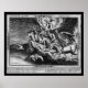 Ideal für eine dunkle akademische Dekoration oder für jeden, der von The Book of Revelation fasziniert ist, dem geheimnisvollen letzten Buch der Bibel und seinen dunklen Warnungen vor Ereignissen bis zum letzten Tag des Gerichts. Ein Skelett auf dem Pferd führt vier Pferde, die über den Himmel galoppieren und Tod und Chaos ausbreiten. Aus einem antiken Barockstil in unserer persönlichen Kollektion adaptiert.