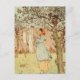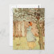 Vintages Kunstwerk, das eine junge Frau zeigt, die die Wäsche aushängt, um sie an den zwischen Baumzweigen aufgestellten Linien zu trocknen