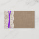 Die rustikale lila Bogen-Hochzeitskollektion ist ein atemberaubendes Design mit einem hübschen rustikalen Burlap-Effekt-Hintergrund mit einem romantischen Vintagen, weißen Spitzen-Effekt-Trimm und einem atemberaubenden lila Band mit Bogen. Diese Hochzeitswebseiten können für Ihren besondere Anlass personalisiert sein und würden den passenden Beilage für jede rustikale Hochzeitssuite, Brautparty, Verlobungsfeier, Geburtstagsparty und vieles mehr machen. Diese Karten können zum Erstellen von Einzelkarten, Gästeinformationskarten, Unterkunftskarten, Richtungskarten, Geschenkregistern oder WunschWell Cards sowie Zeremonie- und Empfang Cards verwendet werden. *Bitte beachten Sie, dass Zazzle nur gedruckte Karten verkauft, sodass diese keine echten Bruch-, Spitzen-, Band- oder Bogen-Materialien haben.