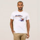 Nettes sportliches kitesurfer Shirt mit einem abstrakten modernen Meerblick mit einem springenden kiter auf dem forground. Ein schönes Retro Farbesceme, das von licht Blau reicht, bebauen eine warme Strandsandfarbe.