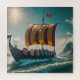 Die Wikinglongschiff schneidet durch die Wellen
