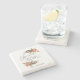 Rustikaler Weihnachtsthema Untersetzer mit Aquarellbildern von Wintergrün mit Orange und Gewürz. Der Text des Drehbuchs sagt "Freude an der Welt" mit einem Herz.