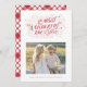 Feiern Sie die Saison mit dieser fröhlichen Weihnachtskarte mit "The Most Wonderful Time of the Year" in handgeschriebener Schrift mit anmutigen Schnörkeln neben Ihrem Lieblings-Foto. Das festliche Design erweckt den Zauber der Ferien, während ein klassisches kariertes Muster auf der Rückseite eine gemütliche, fröhliche Touch verleiht. Machen Sie es sich selbst, indem Sie jedes Detail anpassen - die Farben ändern, die Schriftart aktualisieren und den Gruß und die Botschaft so anpassen, dass sie den Stil Ihrer Familie widerspiegeln. Egal ob Sie warme Wünsche senden oder die Highlights dieses Jahres teilen, diese Karte ist eine stilvolle und herzliche Art, sich mit Lieben in der Nähe und weit zu verbinden.