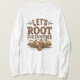 Feiern Sie Freundlichkeit und Gemeinschaft mit diesem rustikalen T - Shirt-Design mit dem Text "LET'S ROOT FOR EACH ANDERE" in einem charmanten handgezeichnet Schriftart. Illustrierte Karotten, Zwiebeln und Kartoffeln sorgen für eine spielerische Touch, Set auf beigefarbenem Holzboden. Perfekt für die Verbreitung von Positivität und gesunden Vibes im Alltag!