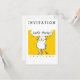 Diese Katze lächelt und lädt Sie zu einem Party ein. Geben Sie Ihren eigenen Namen und Ihre eigene Party-Adresse ein. Cartoon Katze in einem gelben und schwarzen Thema.