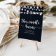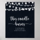 Diese Kerze brennt rustikale Saitenleuchten Zeichen ist perfekt für eine einfache Hochzeit. Das Design zeichnet sich durch schöne handbemalte Saitenleuchten in dunkelblauem Hintergrund aus.