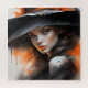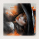 Dieses wunderschöne Gesicht ist absolut fantastisch! Die kaukasische Haut ist so schön und das Aussehen ist perfekt. Der Hintergrund ist eine leuchtend orange, die das Gesicht wirklich auffällig macht.