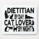 Dieses bezaubernde Textdesign mit dem Satz "Dietitian by Day Cat Lover by Night" und niedlichen Katzenprofilen ist perfekt für alle Diäten, die Katzen Lieben.