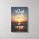 God Cote Canvas : Dieu fera un chemin avec un beau coucher de soleil sur la plage sur l'arrière - plan de l'océan. Citation/message chrétien inspirant et rappel.