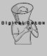 Eine Person wird mit einem großen Erholung-Kegel für Haustiere um den Hals herum dargestellt, um sein Smartphone mit den prominenten Worten "Digital Detox" Karo zu geben. Das Bild kommentiert humorvoll die Idee, eine Barriere zu brauchen, um die Telefonbenutzung zu reduzieren.