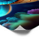 Farbenfrohe Fantasy Digital Art Printing mit seitlicher Seeschildkröte, magische Blasen und Korallenarten. Mit AI-Software erstellte Bilder.