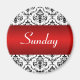 L'aimant dimanche "Jours de la semaine" avec une bande rouge sur damas noir & blanc. Organisez tout réfrigérateur ou carte magnétique avec cet aimant, et les autres magnets correspondants qui complètent l'ensemble. Chacune vendue séparément, pas de commande minimum. Choisissez votre aimant de taille.