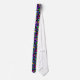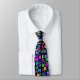 Farbige Quadrate und Kreise auf schwarzer Krawatte. Schauen Sie auch auf den Schuh: