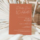 Entspannen, essen und feiern! Feiern wir die Probe unseres Lieblingspärchens vor dem großen Tag mit dieser eleganten, spielerischen und einfachen Probe-Dinner-Einladung, die auf boho terracotta-Erdtönen ein lustiges Drehbuch in Weiß enthält.