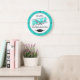 Diner beliebiger Name Datum Retro Türkis Schwarz-w Große Wanduhr