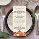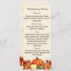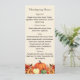 Arrière - plan de couleur crème décorée de fleurs de tombes orangées et de citrouilles. Personnalisez et ajoutez votre menu Thanksgiving à l'avant. Retour : Espace pour vous d'ajouter un message de remerciement à votre invité. Et une partie pour que les invités partagent leurs gratitudes.