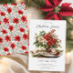 Notre invitation à dîner de Noël comprend un cadre élégant pour dîner de vacances et un bel arrangement floral poinsettia rouge. L'invitation est simple et élégante, avec un arrière - plan blanc et un texte noir.