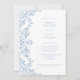 Préparez-vous à une soirée de répétition mariage avec cette élégante invitation à dîner de répétition à thème bleu clair. Les tons bleu et blanc sont parfaits pour un mariage côtier chic, romantique et ancien argent vintage ou un mariage de jardin fleuri. Personnalisez les détails et ajoutez le monogramme de mariée et de mariée sur le dos. Conçu par Simple Desert Designs Studio. Message nous pour une couleur customisée qui correspond à votre thème mariage.