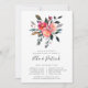 Les élégantes invitations à dîner florales comprennent une poitrine d'aquarelle de fleurs de poitrine rose et pêche au feuillage botanique vert, surplombant les détails de votre dîner de répétition en lettrage noir chic. Inclut l'espace pour la répétition de la cérémonie mariage et la fête ou le dîner à suivre. Les invitations s'inversent vers le vert d'épinette solide.