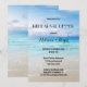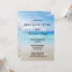 Dîner de répétition moderne avec un tableau d'une plage aux couleurs vives. Cette invitation est agréable pour un couple qui planifie un mariage plage, croisière ou destination.