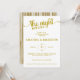 Élégante et sophistiquée, cette invitation à dîner de répétition présente une calligraphie en écriture dorée avec une touche moderne et élégante. L'expression "la veille" est joliment écrite en haut, donnant le ton parfait pour une célébration pré-mariage intime. L'invitation est imprimée en typographie dorée (non imprimée en papier peint) sur un arrière - plan blanc classique, complétée par un motif de bande dorée chic sur le dos. Idéal pour des dîners de répétition formels ou décontractés, ce design est intemporel et polyvalent. Customisez-le avec les noms du couple, les détails de l’événement, les informations RSVP et le code vestimentaire pour une expérience sans faille.