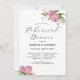 Élégante invitation à dîner de répétition de mariage avec l'aquarelle illustration de fleurs de pivoines roses avec verdure. Parfait pour votre mariage de printemps ou d'été.