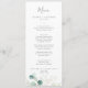 Cette carte généreuse à la verdure et à la feuille d'or mariage est parfaite pour un mariage moderne. L'élégant design botanique présente des eucalyptus aquarellés clairs et aquarellés, agrémentés de feuilles de parties scintillant en or blanc. Ce menu peut être utilisé pour une réception de mariage, un dîner de répétition ou tout événement.