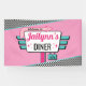 Feiern Sie Ihren nächsten Geburtstag im zeitlosen Diner-Thema der 50er Jahre. Schauen Sie nicht weiter als dieses rosa, aquamarin mit geprüftem Muster Wand-Zeichen / Banner.