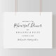 Ce simple panneau de réception minimaliste de la répétition est parfait pour une répétition mariage moderne. Le design sobre et élégant présente une typographie de script classique et sophistiquée en noir et blanc.