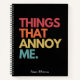 Dinge, die mir Notizbuch ärgern. Personalisiertes einfaches Notebook, wo Sie Ihren Namen hinzufügen können. Bestes Geschenk für ihn oder sie.
