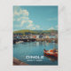 Eine Postkarte von Dingle, Landkreis Kerry, Irland, mit farbenfrohen Fischerbooten im Hafen, schroffen Küstenstreifen und bezaubernden Dorfstraßen, die vom Atlantik gerahmt sind.