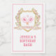 Dieses Weinetikett hat ein Aquarellbild eines Wappen, umgeben von blumengeschmückten Ästen mit grünen und rosa Gingham-Paddeln in der Mitte. Im Text steht "Dinks and Drinks". Die verwendeten Farben sind moosgrün, rot-rot und braun. Sie können mit einem Namen und Geburtstag Jahr personalisieren.