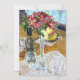 Tisch mit Weinglas und Weinflasche und Blume in Vase