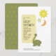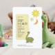 Machen Sie sich bereit, mit diesem bezaubernden Baby Duwer Invitation mit einem süßen kleinen Dinosaurier zu feiern! Dieses charmante Design zeigt einen spielerisch-grünen Polka Dot Dino, der fröhlich drei Helium-Mylar-Ballons in Form von Sonne, Mond und Stern hält. Die Duschdetails werden in einem modernen, lustigen Schriftart präsentiert, der perfekt zum Lesen ausgerichtet ist. Und die Rückseite der Einladung imitiert die lebendigen Farben und Muster der Dino und verleiht dem Ganzen eine angenehme Touch. Machen Sie Ihre Babydusche zu einem unvergesslichen Erlebnis mit dieser bezaubernden Einladung, die eine rauschende Zeit verspricht! Mit seinem spielerischen Design und seinem einladenden Charme wird es sicher jedem die Stimmung geben, die Ankunft Ihres Kleinen zu feiern! Bestellen Sie noch heute und lass der Feierlichkeiten!