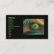 Visitenkarte mit meinem Bild eines grünen Raptorauges mit Palmenreflektionen, die durch Palmenäste blättern.