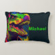 Dino T Rex Cute Kids Accent Coussin T Rex Dinosaur dans différentes nuances de rouge profond, bleu, jaune, vert terre. Idéal pour les garçons ou n'importe quel enfant. Archeology Lover. Animal Evolution qui sont Extincts dans un Art Rétro Pop Style design Jussica, Era Préhistorique, et Reptile.