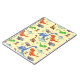 Niedliche Dinosaurier-Weltenmuster mit lebhaften Farben, Vulkanen und Palmen.