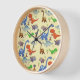 Das Design der Dino-Wanduhr umfasst niedliche Dinosaurier, Vulkane und Palmen.