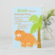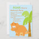 Beginnen Sie Ihre Feier weg vom Recht mit diesem entzückenden Kindergeburtstag einzuladen. Es ist Set auf einem hellblauen Himmelhintergrund mit einer Palme weg zu einer Seite mit einem großen orange Dinosaurier in der Front. Karo heraus unsere anderen Entwürfe und Farben in dieses line.© JW Illustrationen