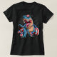 Dinosaurier in einem amerikanischen Fahnencape und stilvolle Brillen, bereit, um den 4. Juli zu feiern.