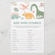 Laden Sie Ihre Lieben ein, um Ihr bevorstehendes kleines Wunder mit unserem Dinosaur Baby Shower Game zu feiern. Diese mit Liebe gestaltete und bezaubernde Auswahl an Einladungen ist perfekt für Babys und Babys, da wir sie so konzipiert haben, dass sie wirklich geschlechtsneutral sind. Die Dinosaurier wurden von Hand in fröhlichen, hellen Farbtönen in Gelb, Salbei Grün und Blau gestrichen. In Verbindung mit whimsikaler Typografie erschaffen sie eine herzzerwärmende Feier des neuen Lebens, das bald beginnen wird. Jede Einladung kann mit Ihren Party-Details personalisiert werden, indem Sie Ihrer Babydusche eine einzigartige Touch hinzufügen. Mit unserer Niedlichen Dino Baby Shower Collection verleihen Sie Ihrer Babydusche eine Touch von Charme und Laune. (Schlüssel - 1. Windeln, 2. Roller, 3. Schnuller, 4. Baby, 5. wertvoll, 6. Schaukelstuhl, 7. Drehstuhl, 8. Milch, 9. Kindersitz, 10. Kinderzimmer, 11. Formel, 12. Stork, 13. Freudenbündel, 14. Lullaby, 15. Decke, 16. Hochstuhl, 1 Dusche, 18 Dinosaurier, 19. Bibb, 20. Gummiklemme)