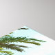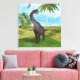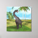 3D digitale Darstellung eines Dinosauriers Brachiosaurus auf dem Hintergrund des blauen Himmels und der grünen Palmen