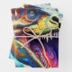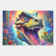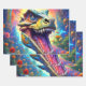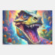 Dinosaur Fantasy T-Rex Wrapping Papier Blatt. Ein farbenfrohes Design für Kinder oder Erwachsene, das Papierblätter in schönen, lebhaften Farben verpackt.