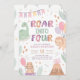 Dinosaur fille 4e anniversaire Invitation mignonne