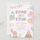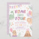 Dinosaur Fille Invitation de 4e anniversaire. Bébé mignon Dino Quatrième Invitation. Imprimable Pastel Rose Roar En Quatre Filles Fête Des Enfants Numériques Modernes. D3