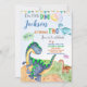Dinosaur invitation anniversaire Dino 2e anniversaire dino-mite fête. Stomp Chomp Growl et Rawr! Cette mignonne invitation pour la fête du 2ème anniversaire avec plusieurs dinosaures rugissants, ballons et bannière de fête au sommet. Modifiez simplement ce modèle facile à utiliser dans le menu Personnaliser pour le rendre spécial.