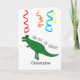 Eine personalisierte Kindergartenkarte für den Dinosaurier-Abschluss. An der Vorderseite befinden sich farbenfrohe Bänder und ein T-Rex-Dinosaurier mit einer Graduierungskappe mit einem Diplom. Die Vorderseite kann leicht mit seinem Namen personalisiert werden. Die Insider-Kartenmeldung kann auch bearbeitet werden und die Rückseite mit dem geschlossen Jahr. Diese niedliche Dinosaurier-Abschluss-Karte für Kinder würde einen großartigen Kartenhalter machen.